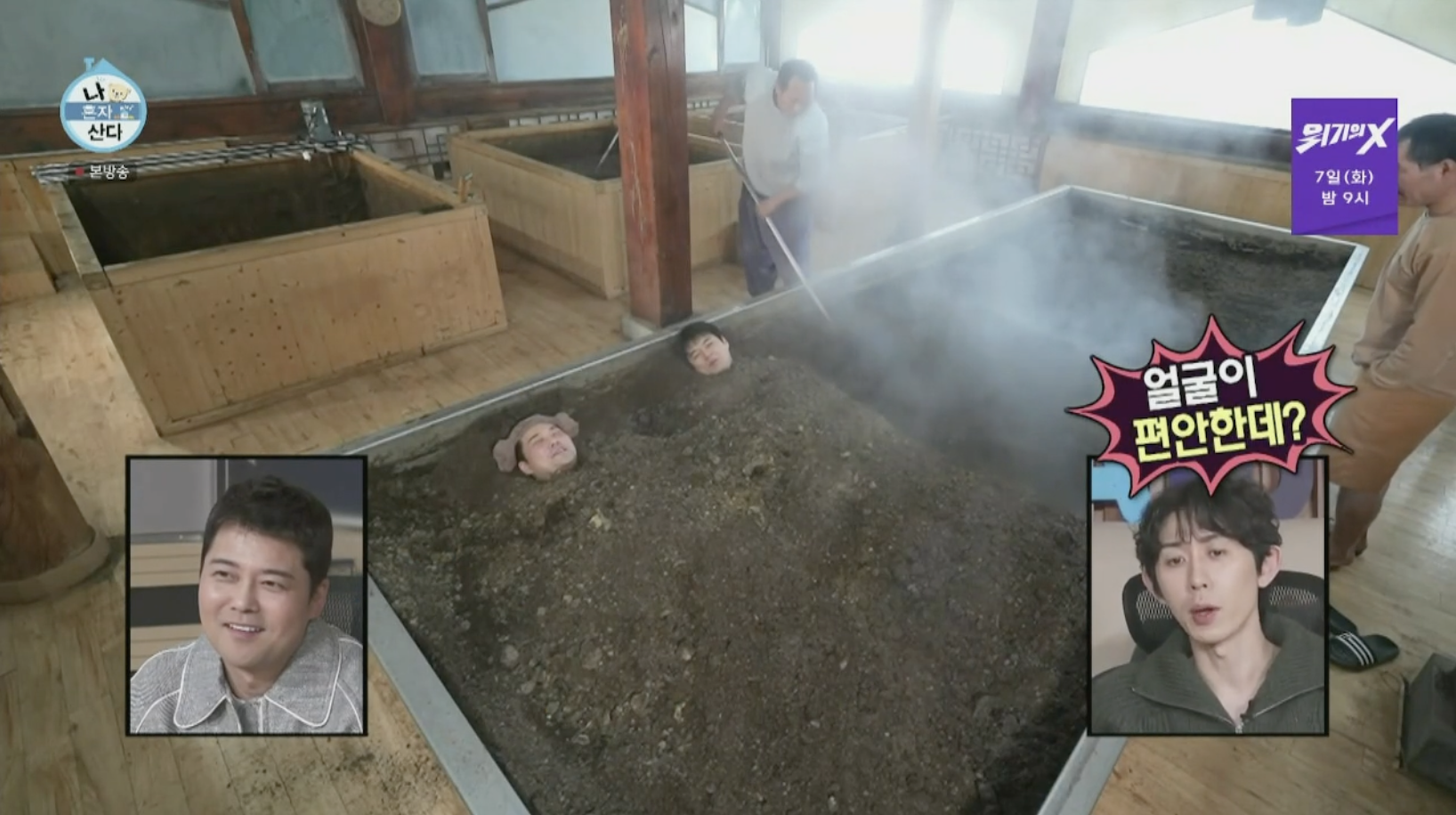 여기서 전현무는 격렬한 운동까지 하며 찜질을 했습니다. 온몸이 땀범벅이 될정도로 운동을 한 후 바로 밖에 나가 몸을 식혔는데요, 몸에서 김이 모락모락 나는 모습이 찜질과 디톡스가 한 번에 제대로 된 것 같아 보이네요.