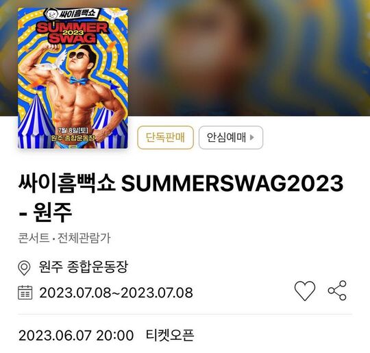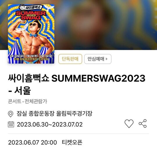 싸이 흠뻑쇼 2023 티켓팅 정보