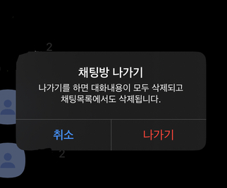 2) 채팅방 목록에서 조용히 나가기 안됨