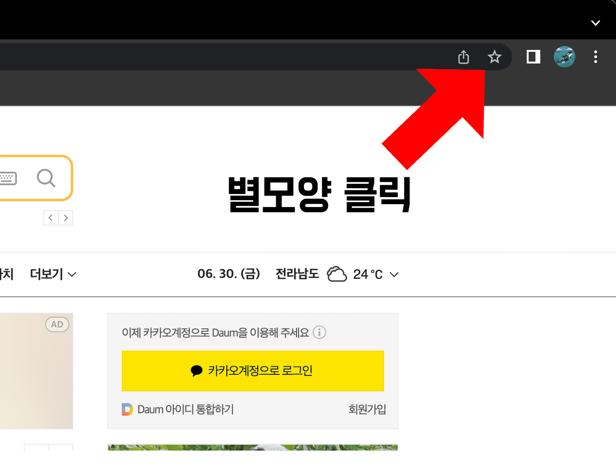 먼저, 북마크(책갈피) 설정하고 싶은 웹사이트로 들어가 줍니다. 저는 맥북을 이용하고 있지만 맥과 윈도우용 둘 다 방법은 똑같으니 그대로 해주시면 되겠습니다. 우측 상단에 별 모양 아이콘을 눌러줍니다.