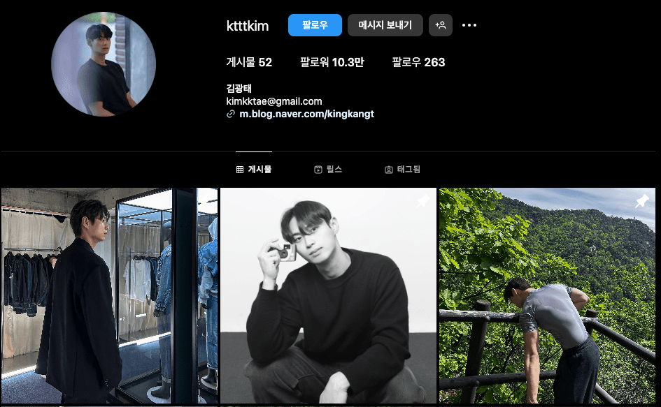 김광태 인스타 팔로워는 10.3만명이며, 팔로우는 263명입니다.