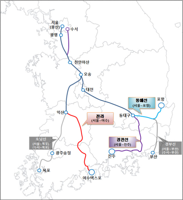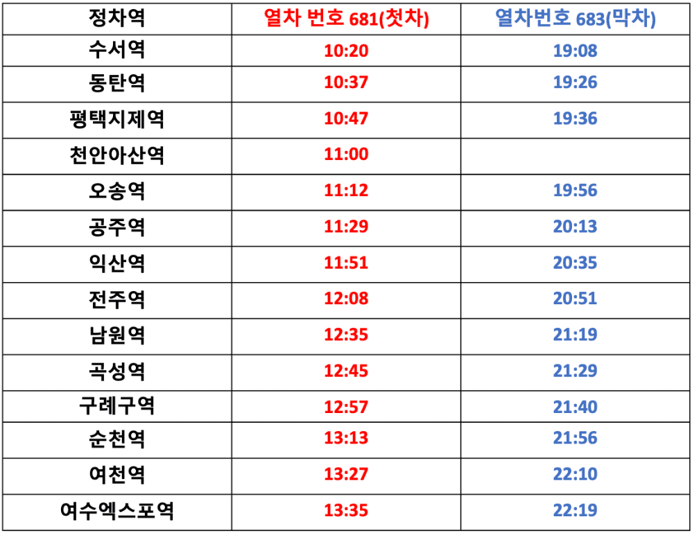 (수서역-동탄역-평택지제역-천안아산역-오송역-공주역-익산역-전주역-남원역-곡성역-구례구역-순천역-여천역-여수엑스포역)
