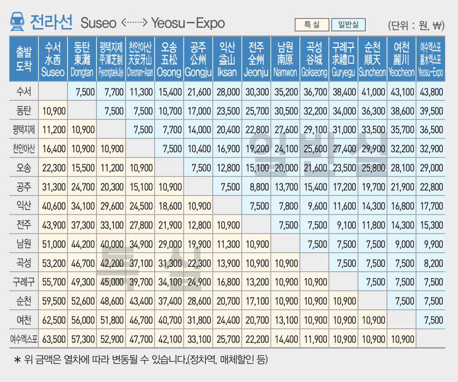 * 특실 서비스 요금은 할인되지 않으며(운임만 할인), 최저운임 이하로는 할인되지 않음